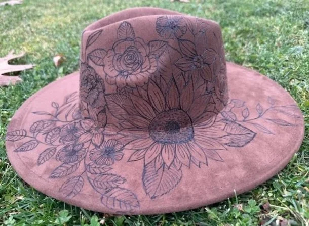 Each hat is a one-of-a-kind masterpiece, hand burned with love using a wood burner. Our quirky designs bring out your unique style with every carefully etched detail. Crafted with passion and precision, these hats aren’t just accessories—they’re wearable art that tells your story. Get ready to turn heads and spark conversations, all while rocking a hat made just for you.