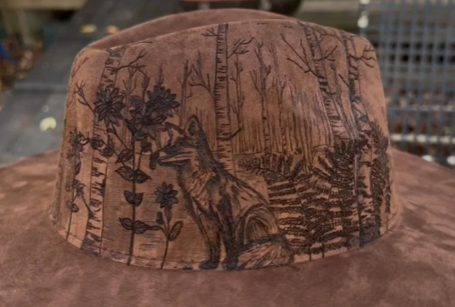 One of my favorite things to do is design a custom hat just for you or your loved one. Using a wood burner, I create unique, freehand burned designs made with love and a touch of quirky style. Reach out through the contact page, and let’s start crafting something truly one-of-a-kind!